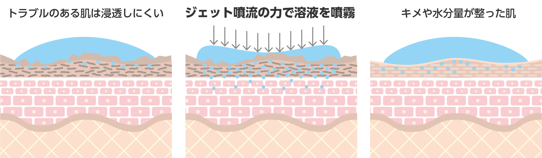 体に針を刺入せず高圧ジェット流で極微細な薬液を皮下注射するもので
